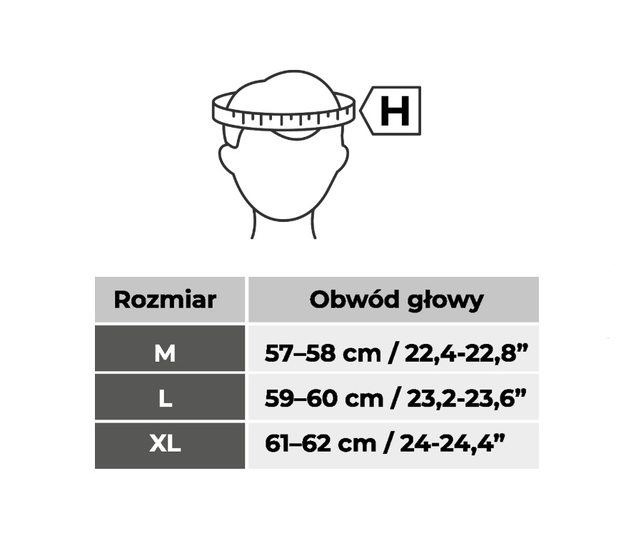 Kask powinien stabilnie leżeć na głowie, nie powinien uciskać głowy.